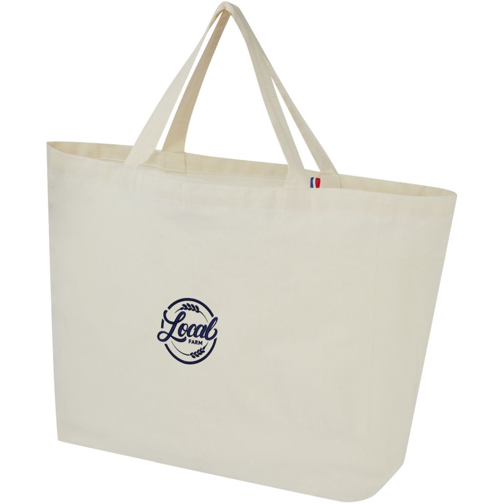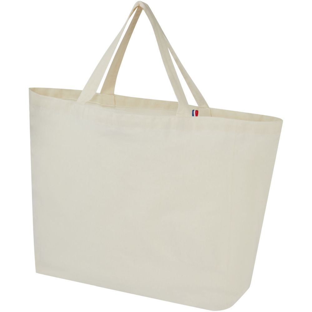Tato taška je konstruována tak, aby odolala každodennímu používání a je vhodná na přenášení těžkých knih nebo potravin. Je vyrobena ze 100% recyklovaných materiálů, což z ní činí udržitelnější volbu. Metody tisku dostupné pro tuto tašku jsou certifikovány GRS, což zajišťuje transparentnost a certifikaci dodavatelského řetězce. Směs recyklované bavlny/polyesteru o gramáži 200 g/m2 zajišťuje odolnost a spolehlivost a dodává tašce odolnost až do hmotnosti 14 kg. Rozměry: 38 x 18 x 43,5 cm.