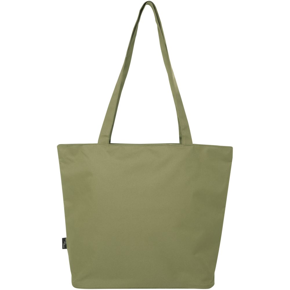 Vyrobená z vodoodpudivého 600D RPET, GRS recyklovaná nákupní taška na zip je perfektní a udržitelná víceúčelová taška na akci, na pláž. nebo pro použití k nákupu potravin. Má hlavní přihrádku na zip a kapsu na zip uvnitř dostatečně velkou, aby se do ní vešel váš telefon a další cenné věci. Ucha jsou dlouhá 34 cm, a proto se nákupní taška snadno přenáší přes rameno. Nosnost do 10 kg. Neobsahuje PVC. Rozměry: 47 x 36 x 17 cm.