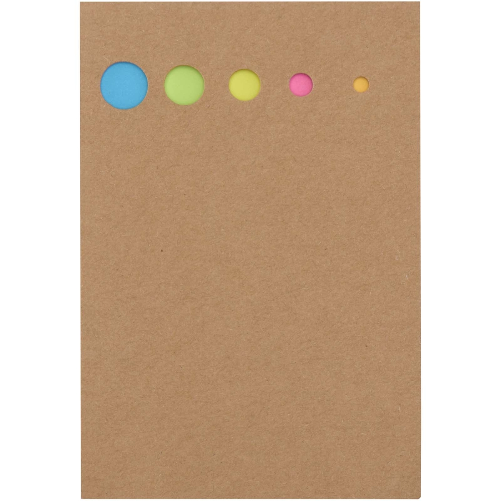Praktická dřevěná záložka se 125 barevnými malými samolepicími záložkami (4,2 × 0,6 cm) a 25 velkými žlutými samolepicími záložkami (4,2 × 4 cm). Rozměry: 12,3 x 8,5 cm