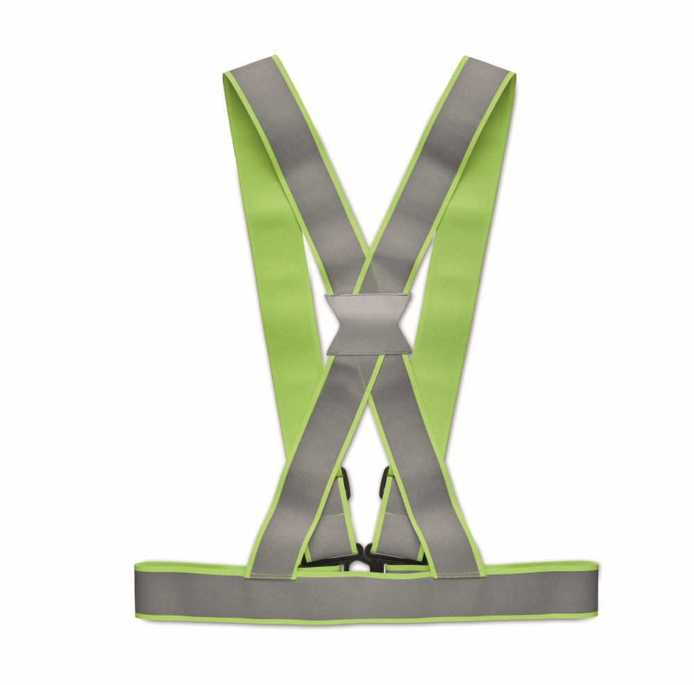 Nastavitelný 360° reflexní pás na tělo se stříbrnými pruhy. Norma EN17353: 202 TYPE-B3. Rozměry: 51 x 56 cm