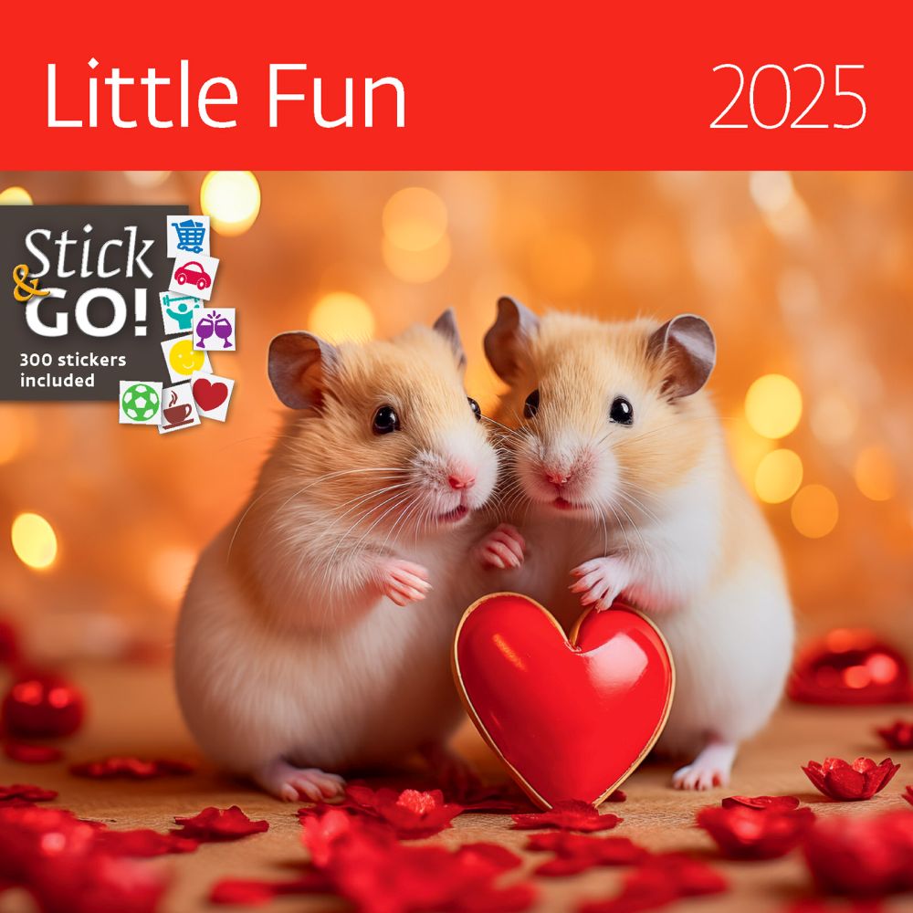 Nástěnný kalendář Little Fun. 14 listů + samolepky. 12 fotografií s měsíčním kalendáriem. Kalendárium: měsíční mezinárodní se svátky 40 států. Kalendárium v šesti jazycích (GB, D, F, I, NL, DK). Vazba: Twin-wire (se spirálou). Super tuhá lepenka. Více než 300 barevných samolepek. Rozměry: 30 x 30 cm (30 x 60 cm).