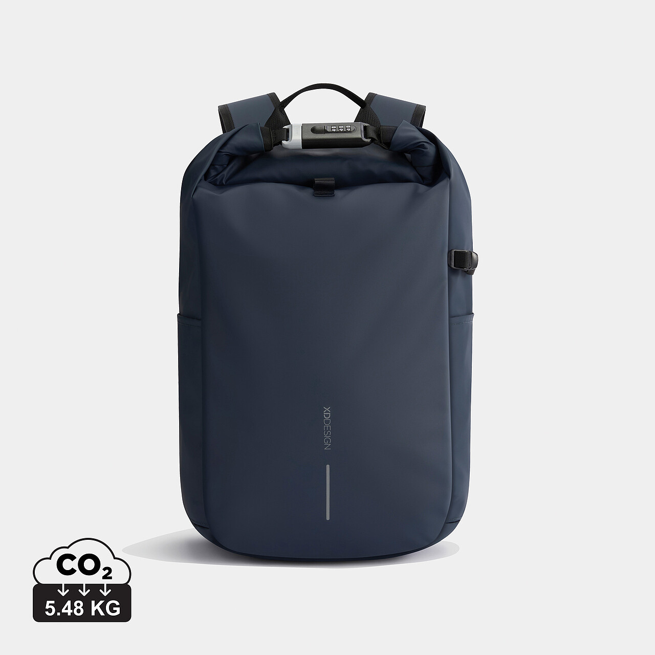Nový městský batoh proti krádeži je ideálním společníkem na cesty, zajišťující bezpečnost a pohodlí. Srolováním hlavní přihrádky a jejím zabezpečením pomocí zesíleného kombinovaného zámku batoh nabízí úplné uzavření, které lze také použít k uzamčení batohu kolem pevného objektu. Skryté kapsy na zadní straně. Batoh je vybaven boční kapsou na láhev s vodou. Uvnitř jsou polstrované přihrádky pro 16” laptop a síťové kapsy pro organizaci vašich nezbytností. Vyrobeno z látky s traceability Aware™ z recyklovaného polyesteru a povrchově upraveno měkkým voděodolným PU povlakem. Obsahuje 11 % recyklovaného materiálu. Registrovaný design®.