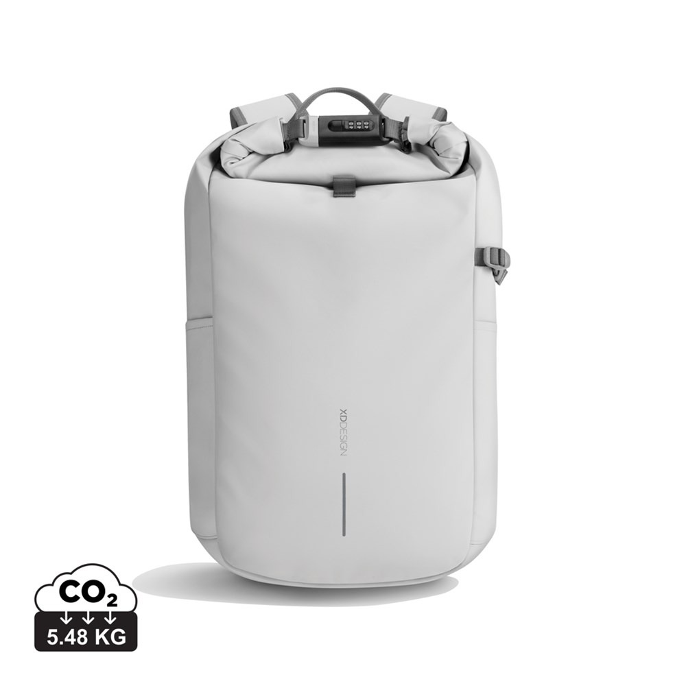 Nový městský batoh proti krádeži je ideálním společníkem na cesty, zajišťující bezpečnost a pohodlí. Srolováním hlavní přihrádky a jejím zabezpečením pomocí zesíleného kombinovaného zámku batoh nabízí úplné uzavření, které lze také použít k uzamčení batohu kolem pevného objektu. Skryté kapsy na zadní straně. Batoh je vybaven boční kapsou na láhev s vodou. Uvnitř jsou polstrované přihrádky pro 16” laptop a síťové kapsy pro organizaci vašich nezbytností. Vyrobeno z látky s traceability Aware™ z recyklovaného polyesteru a povrchově upraveno měkkým voděodolným PU povlakem. Obsahuje 11 % recyklovaného materiálu. Registrovaný design®.