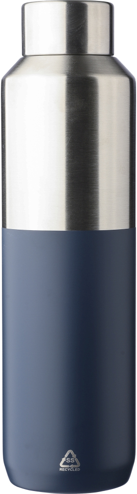 Dvoustěnná vakuově izolovaná láhev z nerezové oceli. Víko z PP s vrchní částí z nerezové oceli. Na přední straně je vyryté logo z recyklovaného materiálu. Jednotlivě baleno v hnědé kartonové krabici. Rozměry: 7 x 24,5 cm