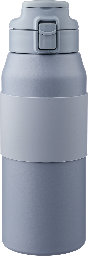 Nerezová dvoustěnná láhev na pití (800 ml) se silikonovým úchopem na těle, brčkem, PP víčkem a rukojetí. Vyrobeno z nerezové oceli 304. Stisknutím tlačítka otevřete nebo zavřete výtok. Udrží obsah horký po dobu 8 hodin a studený po dobu 12 hodin. Jednotlivě balené v hnědé kartonové krabici.Rozměry: 8,8 x 8,8 x 24,5 cm