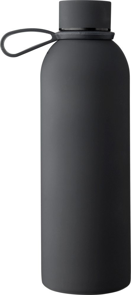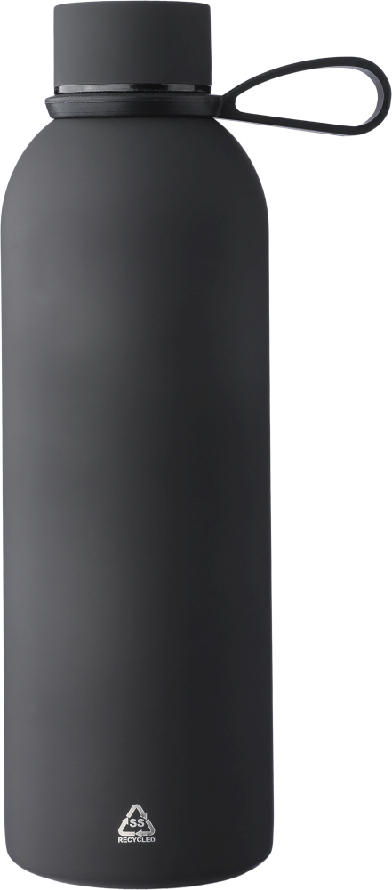 Vakuová láhev na pití s ??dvojitou stěnou z recyklované nerezové oceli (500 ml). S pogumovaným povrchem pro měkký pocit. Šroubovací víčko z PP s kovovými detaily a silikonovým poutkem na nošení. Na těle je vyryté recyklované logo. Jednotlivě baleno v hnědé kartonové krabici. Rozměry: 7,3 x 23 cm