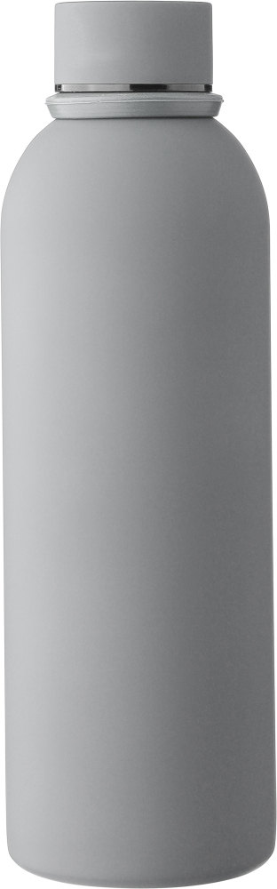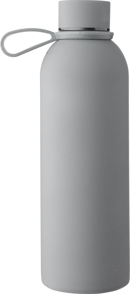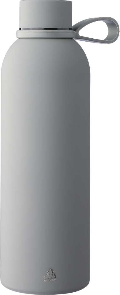 Vakuová láhev na pití s ??dvojitou stěnou z recyklované nerezové oceli (500 ml). S pogumovaným povrchem pro měkký pocit. Šroubovací víčko z PP s kovovými detaily a silikonovým poutkem na nošení. Na těle je vyryté recyklované logo. Jednotlivě baleno v hnědé kartonové krabici. Rozměry: 7,3 x 23 cm
