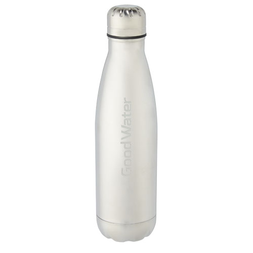 Láhev z nerezové oceli s vakuovou izolací a ikonickým designem. Izolační nerezová ocel 18/8 udrží nápoje horké nebo studené po dobu několika hodin. Testováno a schváleno podle německé legislativy pro bezpečnost potravin (LFGB), testováno na obsah ftalátů podle předpisů REACH. Tato elegantní láhev na vodu se vejde se do většiny držáků na nápoje a je dokonalým reklamním předmětem. Objem je 500 ml. Dodává se v dárkové krabičce z recyklované lepenky. Rozměry: 27 x O 7 cm