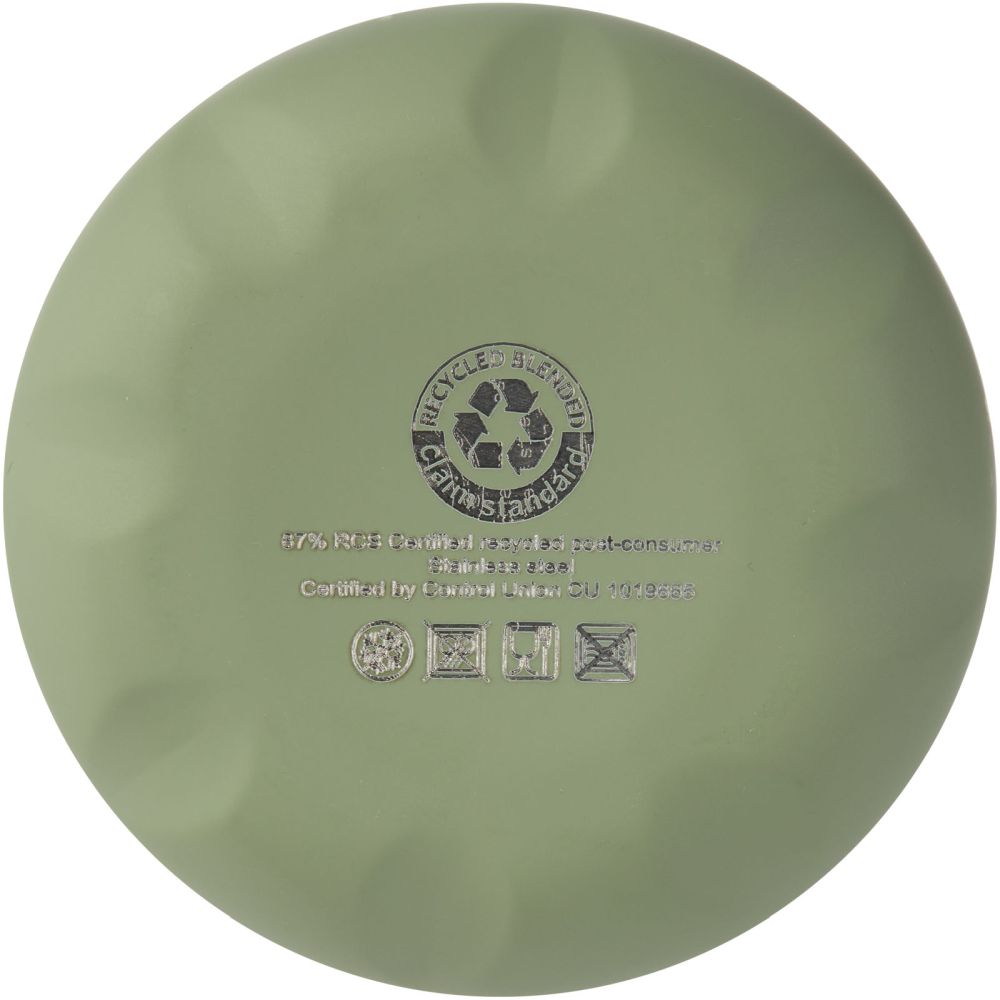 Vakuově izolovaná láhev z recyklované nerezové oceli s certifikací RCS s ikonickým designem, která udrží nápoje horké nebo studené po několik hodin. Díky základně, která se vejde do většiny držáků nápojů, je tato elegantní láhev na vodu perfektním reklamním předmětem. Testováno a schváleno podle německé legislativy pro bezpečnost potravin (LFGB), testováno na obsah ftalátů podle předpisů REACH. Objem je 500 ml. Dodává se v dárkové krabičce z recyklované lepenky. Rozměry: 7,1 x 27 x 7,1 x O 7,1 cm.
