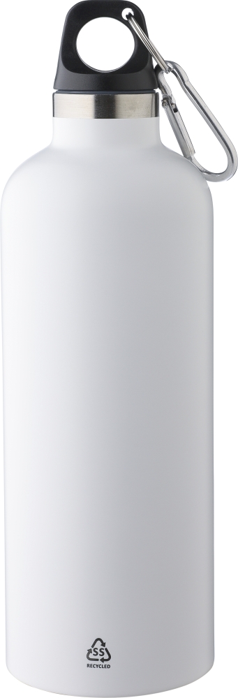 Dvoustěnná láhev z recyklované nerezové oceli s objemem 500 ml, víčkem z PP a hliníkovou karabinou. Udrží nápoje teplé 8 hodin a studené 12 hodin. Láhev má matný povrch (kromě stříbrné barvy) a je opatřena recyklovaným laserovým logem. Jednotlivě baleno v hnědé kartonové krabici. Výška: 23 cm