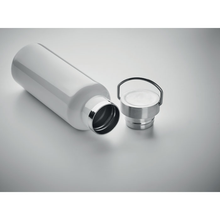 Dvoustěnná vakuově izolační láhev z recyklované nerezové oceli (90 % recyklované nerezové oceli a 10 % nerezové oceli) s víčkem s držadlem. Objem: 500 ml. Rozměry: O7x21.5cm