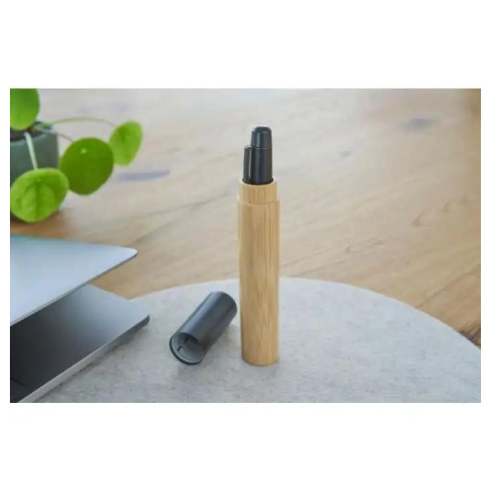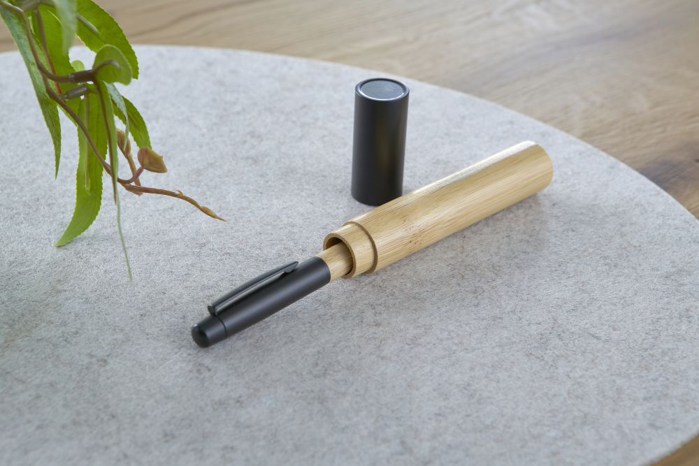 Kuličkové pero z nerezové oceli s bambusovou rukojetí. Obsahuje kovovou náplň Parker blue. Jednotlivě baleno v hnědé kartonové krabici. Materiál: nerezová ocel Rozměry: 2,29 x 15,7 cm