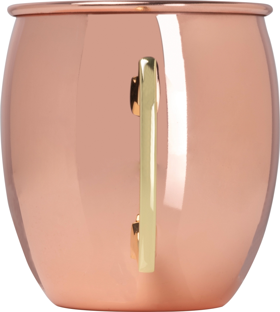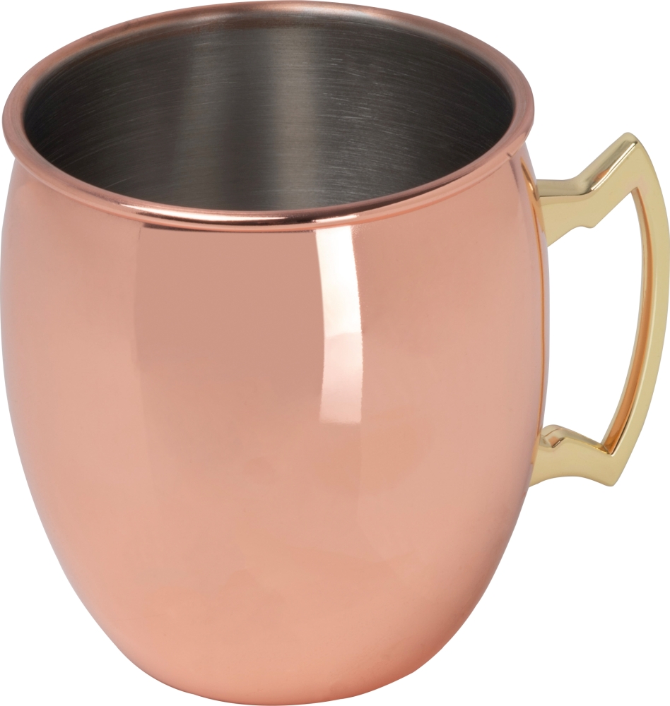 Nerezový hrnek s měděným povrchem a zlatým uchem, objem 500 ml. Ideální do koktejlů nebo jiných nápojů. Rozměry: o 8,5 x 9,8 cm