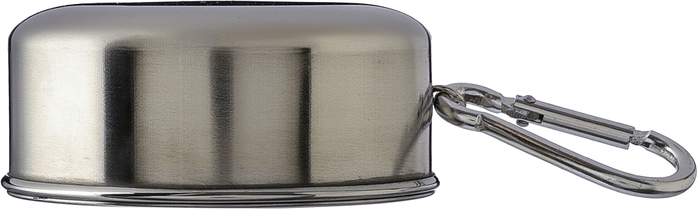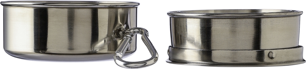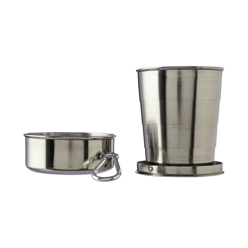 Nerezový skládací hrnek (220 ml) s kovovou karabinou. Jednotlivě baleno v hnědé kartonové krabici.Rozměry: 7,8 x 7,8 x 3,4 cm