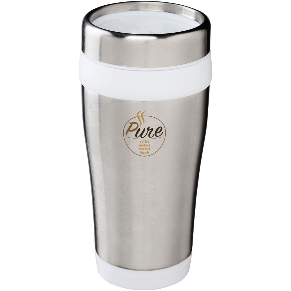 Nerezový termohrnek, 410ml, stříbrný s bílým pruhem