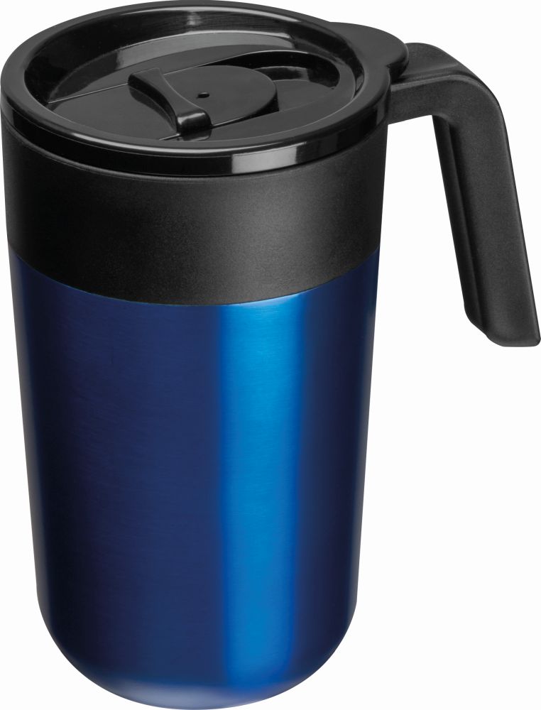 Nerezový termohrnek s plastovým víčkem a uchem, 400ml, modrý