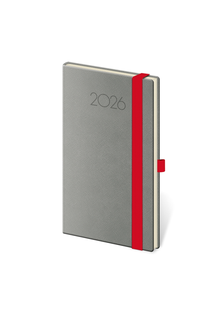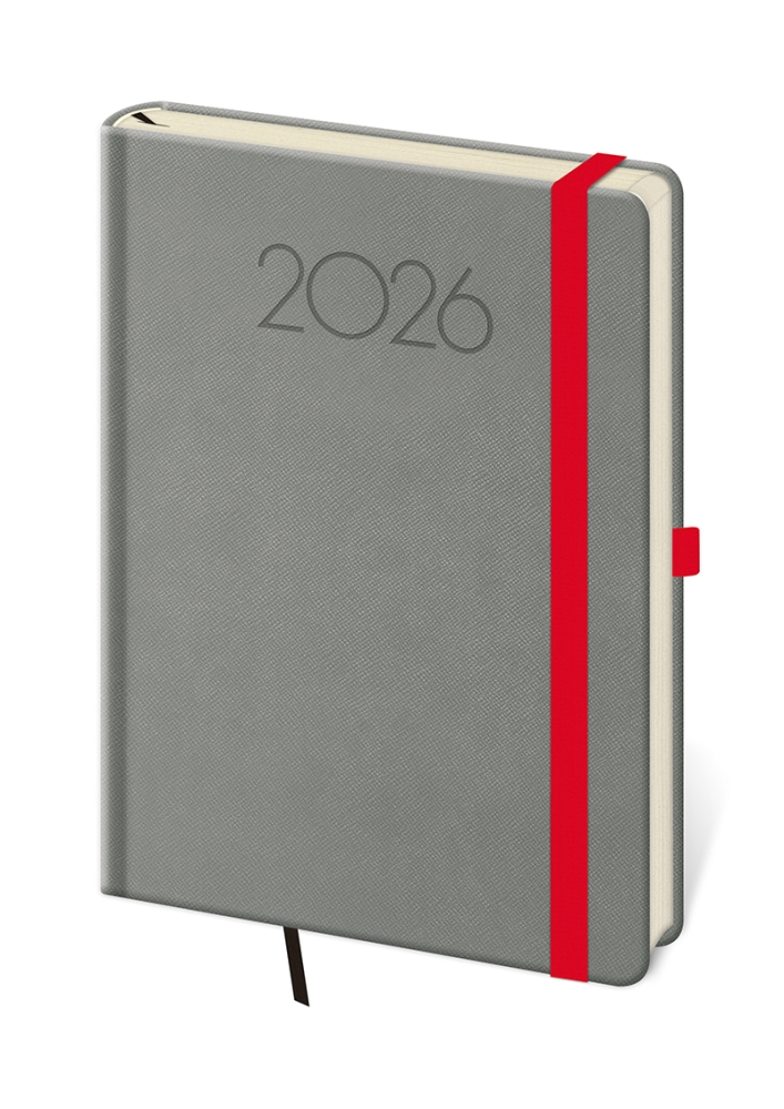 Diář je vyroben ze zajímavé matné koženky s nepravidelnou strukturou, navíc je doplněn o gumičku pro uzavření v kontrastní barvě. Vzhledem ke struktuře materiálu je vhodná pro ražbu bez fólie, nedoporučujeme však razit drobné texty, které mohou při ražbě zaniknout. Diář obsahuje: osobní údaje, plánovač dovolené (měsíční přehled), plánovací kalendář, telefonní předvolby, státní svátky České a Slovenské republiky, mezinárodní svátky, roční výhled, denní layout, adresář, mapa Evropy a České a Slovenské republiky. Rozměry: 14,5 x 20,5 cm. Minimální odběr 5 ks. Množství pak dále zvyšovat jen po 5 ks, tedy 5, 10, 15, 20 ks atd.