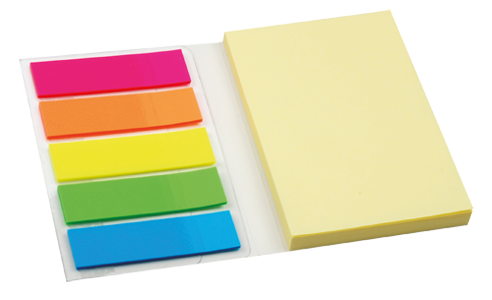Jedná se o plnobarevný potisk přebalu včetně lesklého lamina, dále pak tisk 1 nebo 2 barvami na listy. Je možné si vybrat ze dvou variant: a) note-it 50 x 75 mm Obsahuje note-it 50 x 75 mm 50 listů a 5 x 20 klasických plastových značkovačů v 5 neonových barvách, přebal z 230g pohlednicového kartonu. Minimální množství: 100 ks. b) note-it 100 x 75 mm Obsahuje note-it 50 x 75 mm 25 listů a 100 x 75 mm 50 listů, 5 x 20 listové plastové neonové značkovače, přebal z 230g pohlednicového kartonu. Minimální množství: 100 ks. Cena na vyžádání.