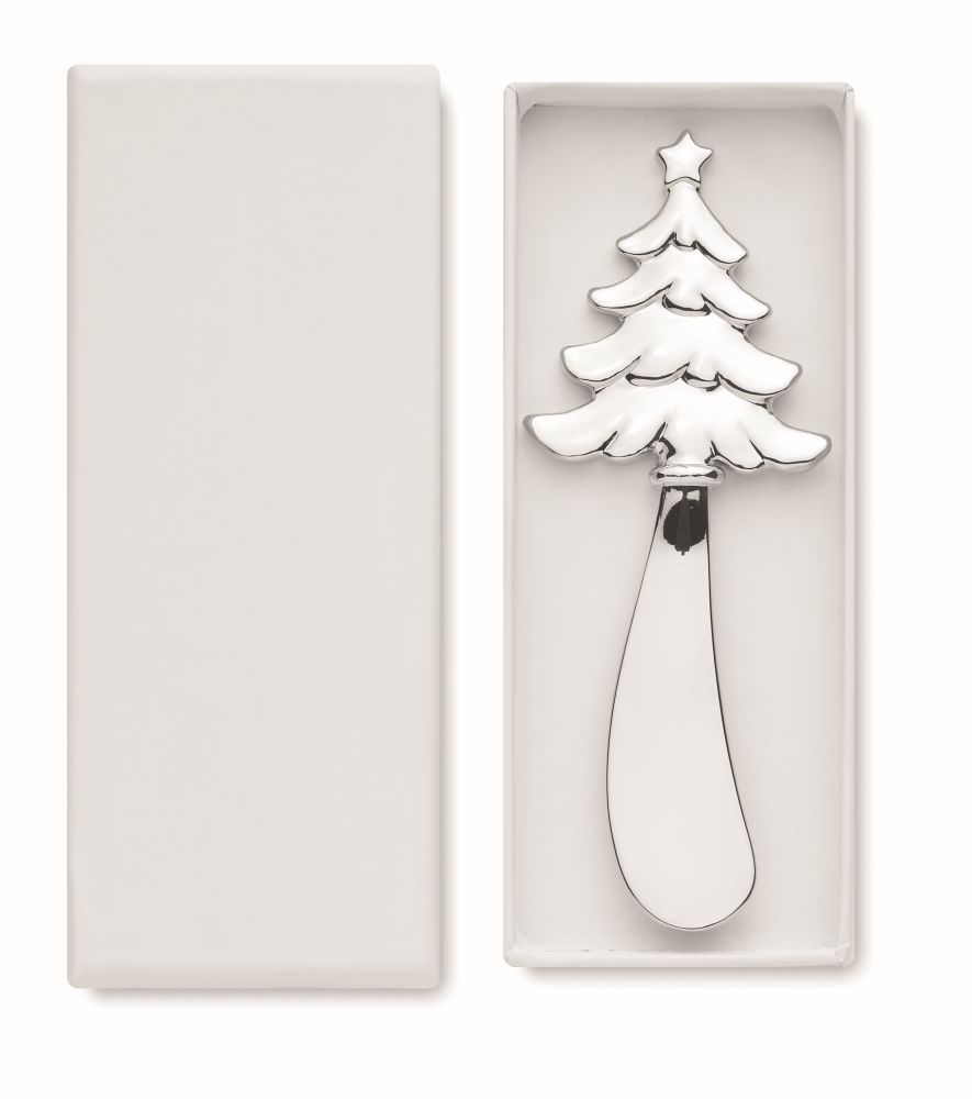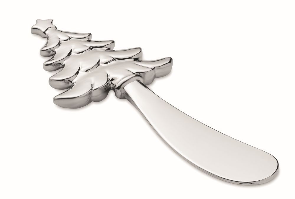 Nůž na sýr ze zinkové slitiny ve tvaru vánočního stromku. Dodáváno v dárkové krabici. Rozměry: 11x4cm