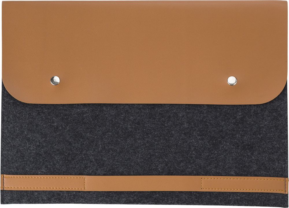 Obal na notebook 14" vyrobený z RPET plsti s detaily z umělé kůže. Zavírá se na dvě přezky. Rozměry: 37 x 2 x 26.5 cm