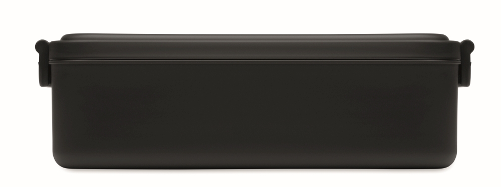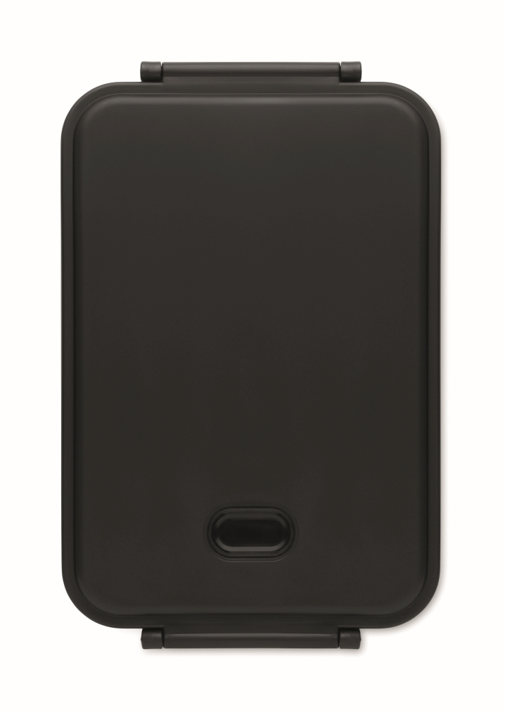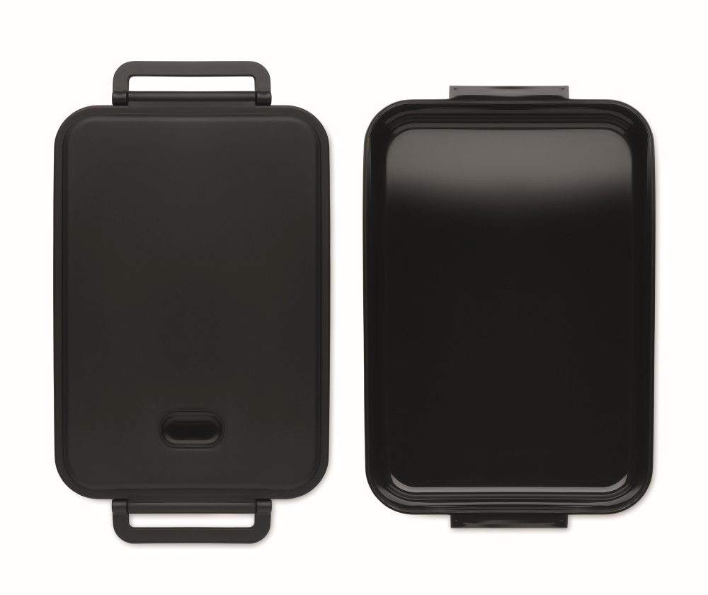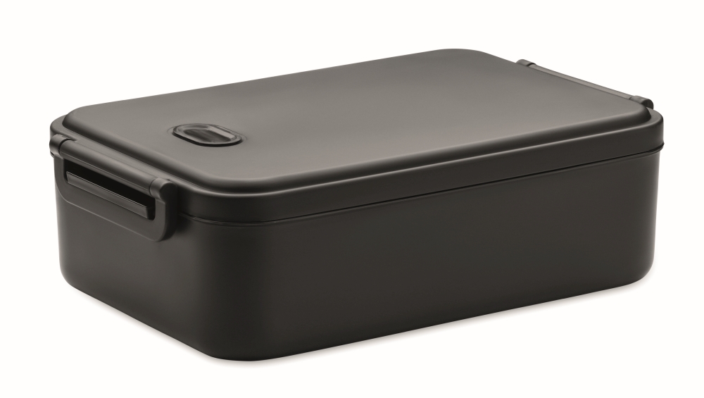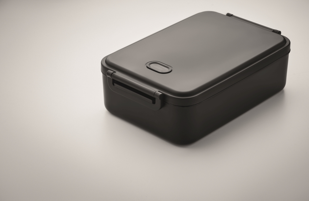 Velký obědový box z recyklovaného PP se vzduchotěsným víkem, silikonovým ventilem a zapínáním na dvě boční spony. Objem: 2200 ml. Rozměry: 25,5 x 17 x 7,5 cm. Materiál: recyklovaný PP