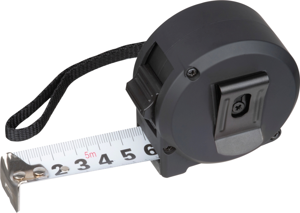 Robustní svinovací metr o délce 5 m, s robustním plastovým krytem, velkými čísly, zarážkou a praktickým nylonovým páskem. Rozměry: 6 x 3,6 x 6 cm