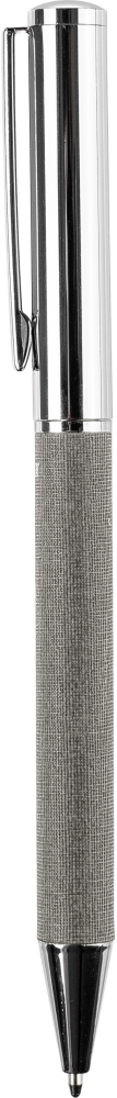 Mosazná a rPETotočná propiska s kovovým klipem a rukojetí. Logo rPET na těle. Jednotlivě baleno v hnědé kartonové krabici. Modrý inkoust. Rozměry: 14 x 1,3 cm