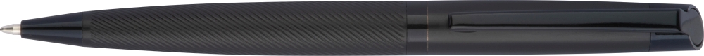 Černé rotační nerezové kuličkové pero v matném provedení s modrou výplní. Rozměry: o 1 x 14 cm