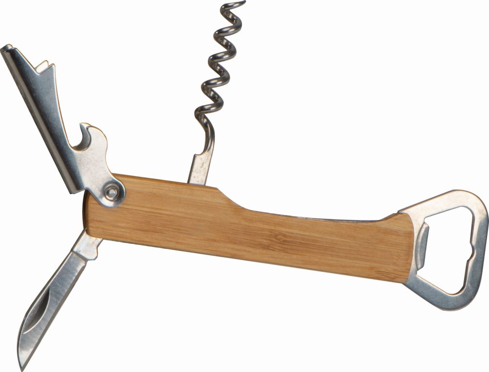 Kovový otvírák s vývrtkou a bambusovým povrchem. Rozměry: 13,5 x 4 x 1,1 cm