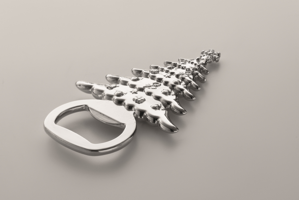 Otvírák na láhve ze slitiny zinku s vánočním motivem. Rozměry: 11,5 x 4,5 x 2 cm. Materiál: kov