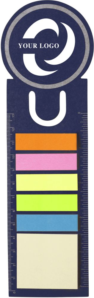 Záložka do knihy s pěti různě barevnýmiznačkovacími lístky, note-item a pravítkem.Zakončení ve tvaru kruhu. Rozměry: 6 x 22 x 0,1 cm