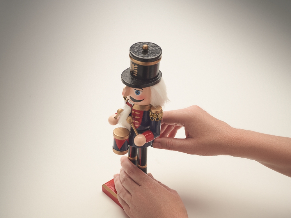 Vánoční ozdoba ze dřeva v podobě Louskáčka. Rozměry: 7 x 6,5 x 25,5 cm. Materiál: dřevo