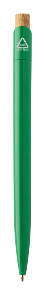 Kuličkové pero z recyklovaného plastu s bambusovým spínáním. Rozměry: O 1 × 14,5 cm.