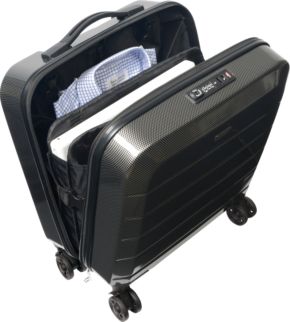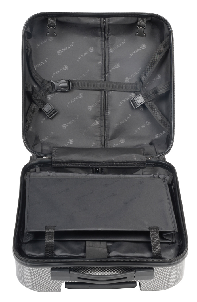 Palubní kufřík na 4 kolečkách, s číselným TSA zámkem. Designový kufřík, úložný prostor v obou polovinách kufru, organizér je odnímatelný, vhodný na dokumenty i notebooky do 17". Kvalitní hliníková výsuvná rukojeť, kolečka otočná o 360°. Rozměry: 46 x 40 x 20 cm. Objem: 30 l. Váha: 2,8 kg. Doporučená technologie tisku: Sítotisk S3
