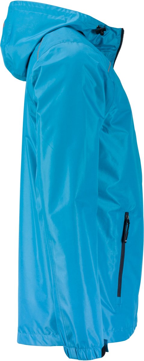 Větruodolná a voděodolná (3.000mm vodní sloupec) s TPU povlakem, prodyšná (1.500g/m2 za 24h), nastavitelná kapuce s elastickou šňůrkou, ochrana brady, 2 boční kapsy se zipem, vnitřní kapsa, podlepené švy, zipy v kontrastní barvě, přístup k zušlechtění na zádech, reflexní detaily (bez ochranné funkce) na kapuci, vpředu a vzadu . Materiál: Vnější strana: 100% polyester, uvnitř: 100% polyester