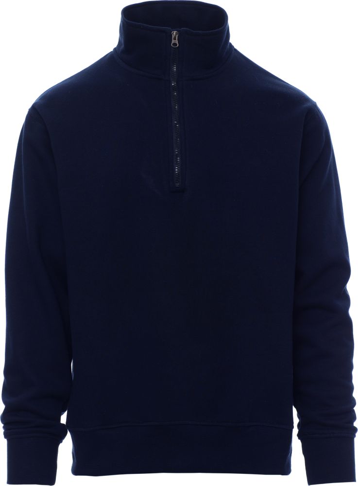 Pánská mikina s barevně sladěným plastovým polozipem s kovovým jezdcem, všívané rukávy, manžety a pas s elastickým žebrováním, zesílené švy. Materiál 70 % bavlna a 30 % polyester, 280 gsm.