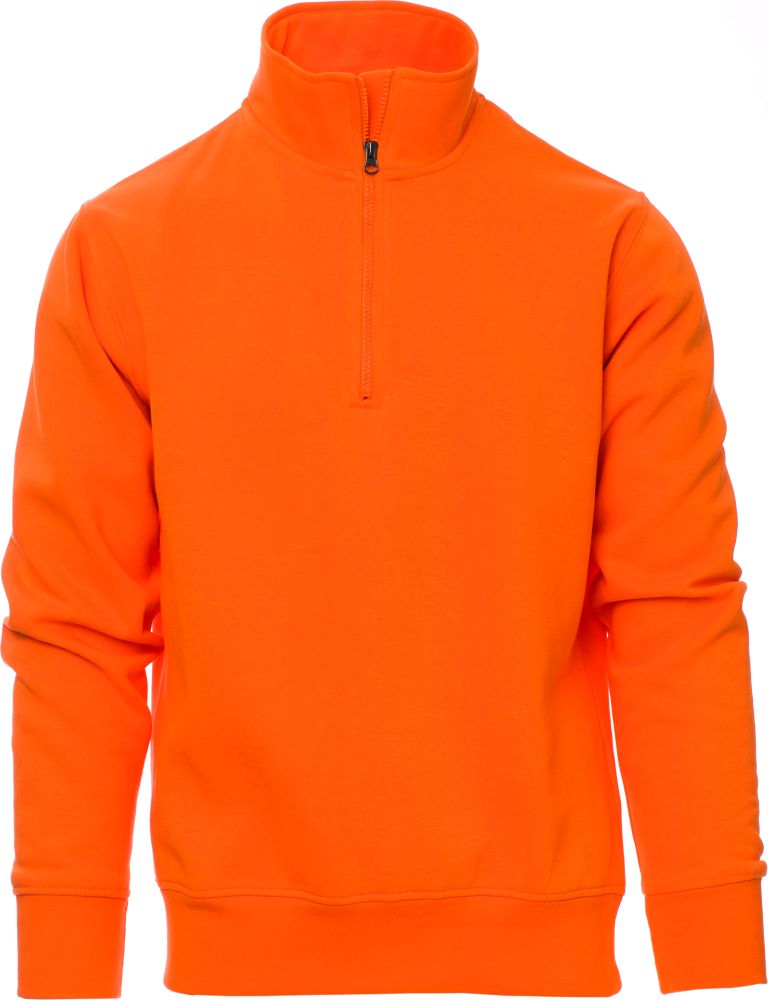 Pánská mikina s barevně sladěným plastovým polozipem s kovovým jezdcem, všívané rukávy, manžety a pas s elastickým žebrováním, zesílené švy. Materiál 70 % bavlna a 30 % polyester, 280 gsm.