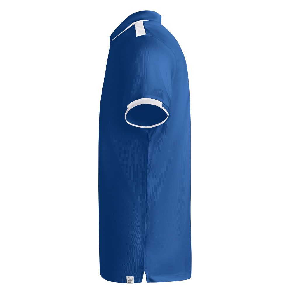 Antibakteriální látka z recyklovaného polyesteru. 1 × 1 žebrovaný límec a detail na rukávech. Zesílené kryté švy v límci. Zapínání na 2 skryté knoflíky. Kontrastní detaily a ramena. Boční rozparky na lemu. Odnímatelný štítek. Materiál: 100% polyester