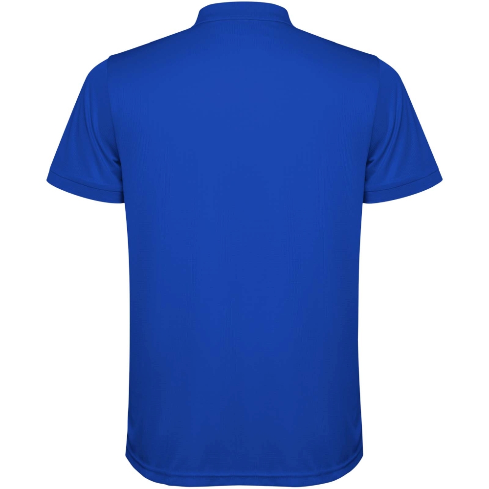 Pánské polo tričko s krátkým rukávem. Zesílené kryté švy ve vnitřním límci. 1×1 žebrované manžety a límeček. Boční švy. Zapínání na 3 knoflíky a boční rozparky.