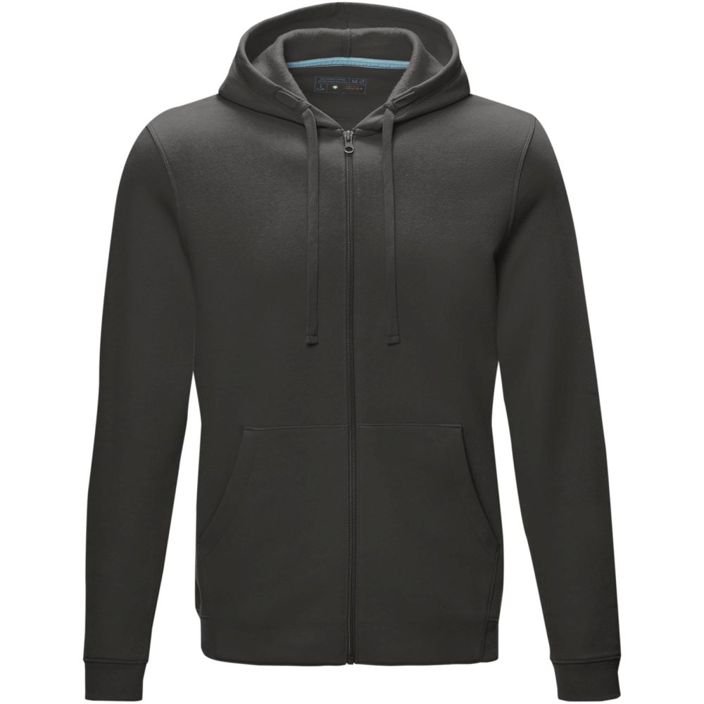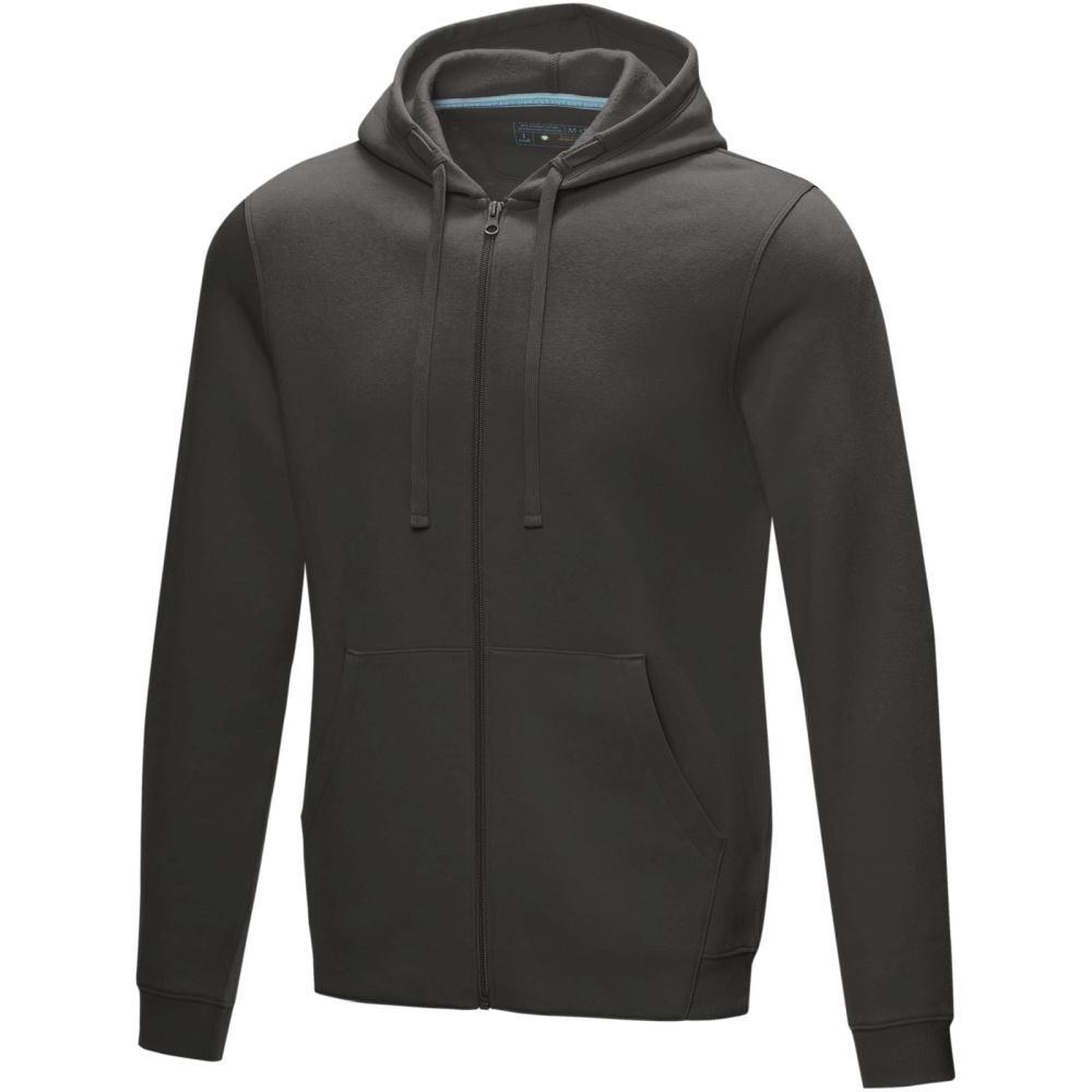 Pánská mikina značky Elevate s kapucí. Mikina je vyrobena z organické bavlny a recyklovaného polyesteru. Mikina má přední reverzní zip s certifikací GRS, certifikované stahovací šňůrky v kapuci, 2 kapsy, žebrový úplet manžetek i spodního lemu a na vnitřní straně je kartáčovaná. Úplet 80% certifikovaná organická bavlna, 20% GRS certifikovaný recyklovaný polyester, 280 g/m2.