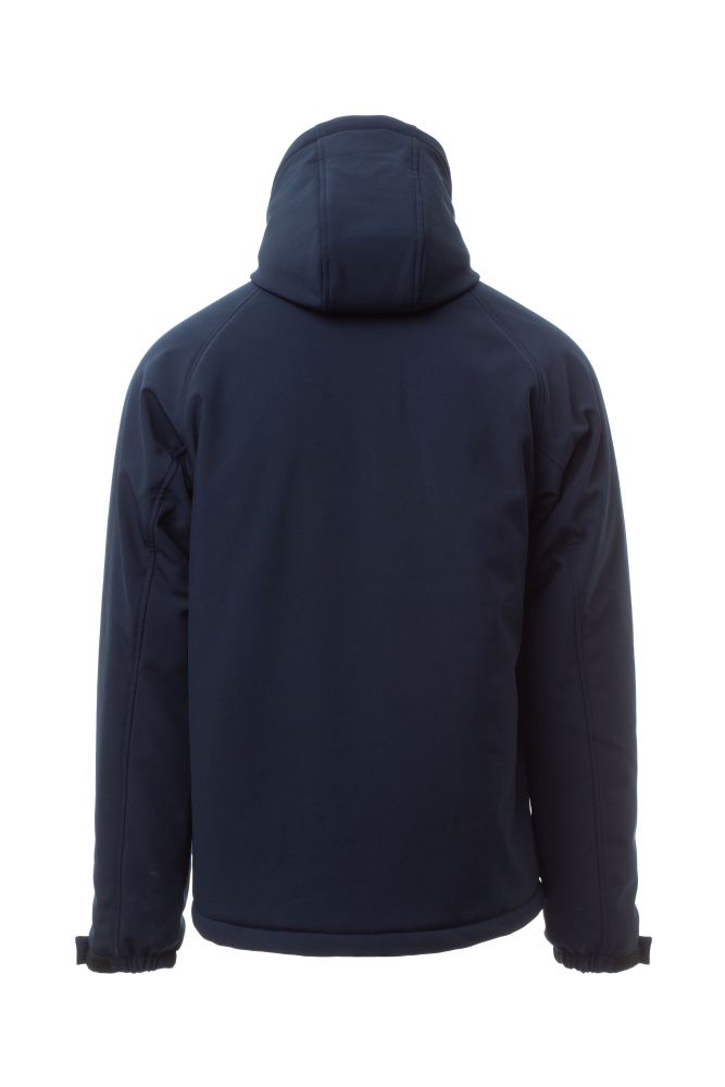 WP 8000 mm H2O, WVT 5000 g/m2 24h. Pánský zateplený softshell, zapínání na zip s kovovým jezdcem „semi-auto lock“ a přizpůsobeným taháčkem. Neodnímatelná kapuce se stahovací šňůrkou. Elastické stahovací manžety na suchý zip. Dvě boční kapsy a jedna kapsa na hrudi na zip. Fluorescenční taháčky. Dvě vnitřní kapsy: jedna tvarovaná na zip a jedna na tablet se zapínáním na suchý zip. Spodní část stažitelná pomocí přizpůsobených zarážek.