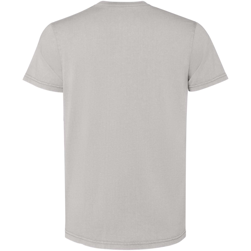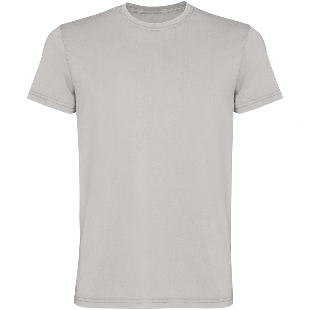 Pánské tričko s krátkým rukávem. Sepraný vzhled. Žebrovaný kulatý výstřih 1 × 1. Krycí steh v tónu látky s uhlazenou povrchovou úpravou.