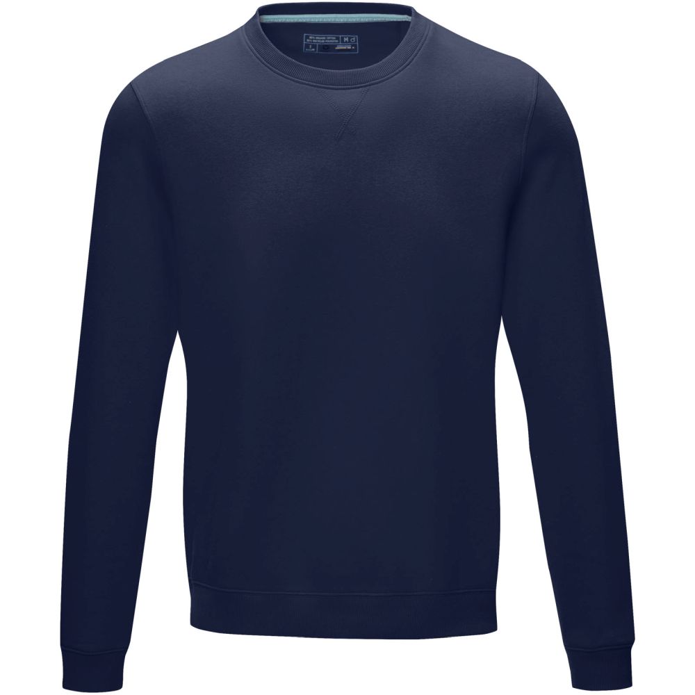 Pánský svetr značky Elevate z organické bavlny a recyklovaného polyesteru. Svetr má kulatý výstřih s v-vkladem na středu, žebrový úplet límečku, manžet i spodního lemu a na vnitřní straně je kartáčovaný. Úplet 80% certifikovaná organická bavlna, 20% GRS certifikovaný recyklovaný polyester, 280 g/m2.