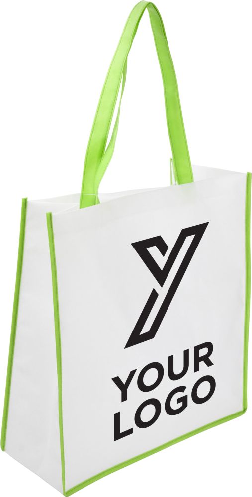 PARIOLA Nákupní taška z netkané textilie, bílá se zeleným lemem