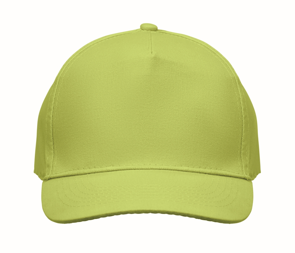 Pětipanelová baseballová čepice z bavlněného kepru 180 gr/m2 s nastavitelným zapínáním na suchý zip a 2 vyšívanými očky ve stejné barvě. Velikost 7 1/4. Rozměry: 20 x 17 x 11 cm