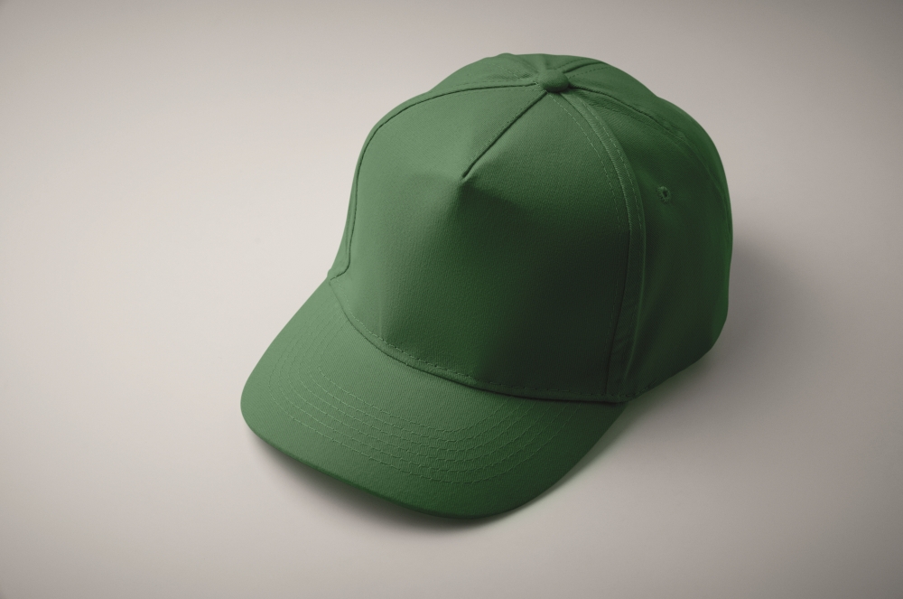 Pětipanelová baseballová čepice z bavlněného kepru 180 gr/m2 s nastavitelným zapínáním na suchý zip a 2 vyšívanými očky ve stejné barvě. Velikost 7 1/4. Rozměry: 20 x 17 x 11 cm