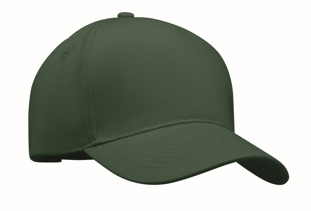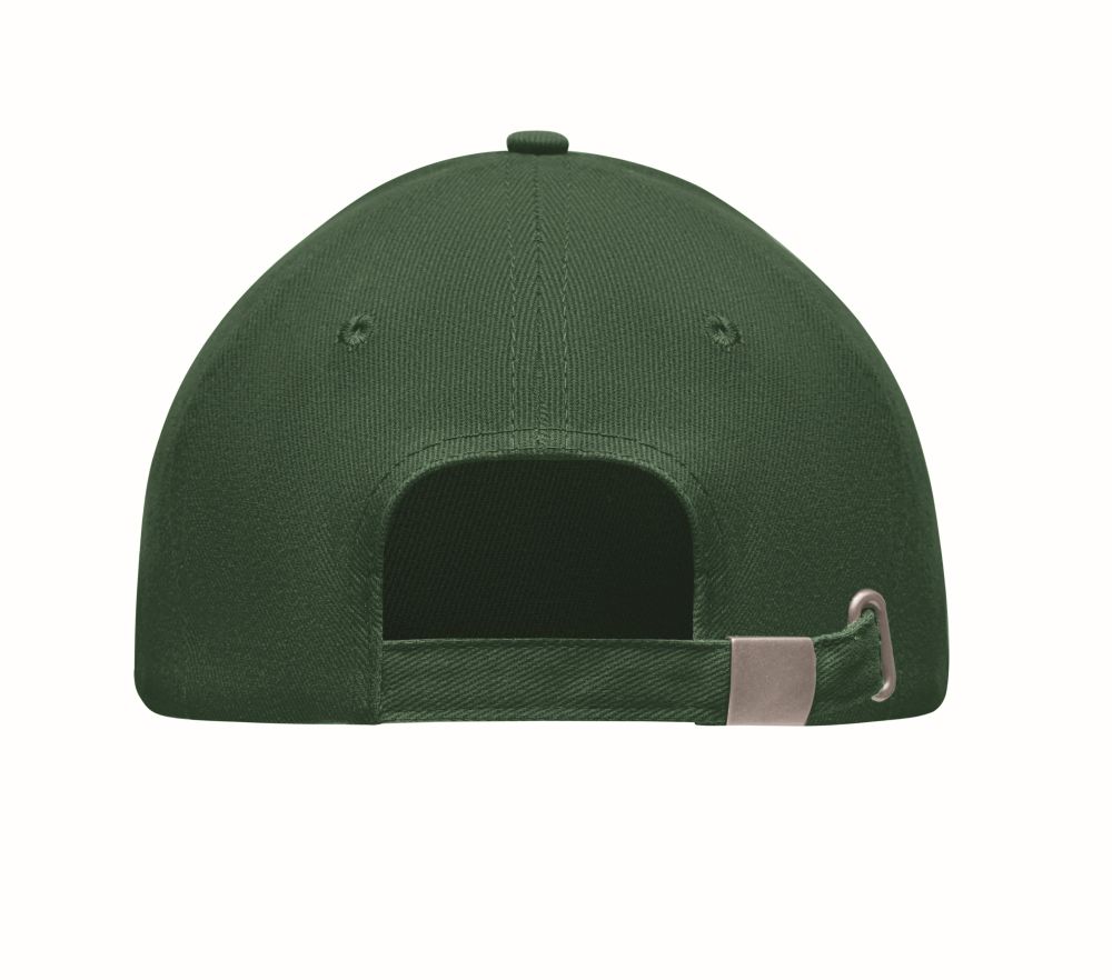 Pětipanelová baseballová čepice z těžké broušené keprové bavlny 260 g/m2 s ocelovou sponou. Čtyři vyšívaná očka ve stejné barvě. Velikost 7 1/4. Rozměry: 21x16x11cm