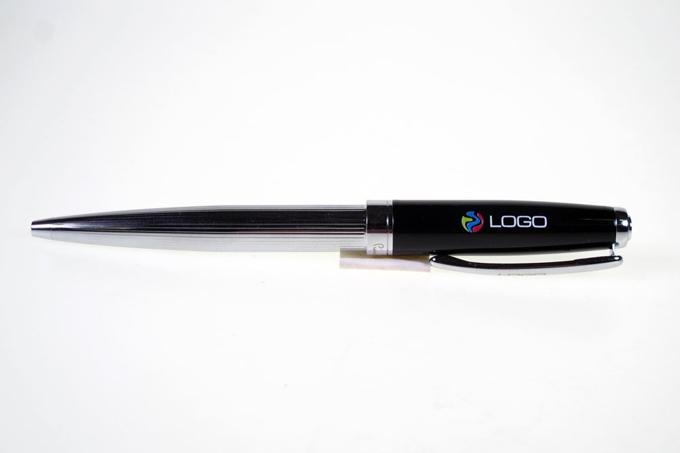 Luxusní kovové kuličkové pero značky Pierre Cardin v masivním designu kombinace stříbrné a černé barvy s jemným rytím na těle. Pero obsahuje kvalitní modrou náplň s hrotem 1 mm a je dodáváno s náhradní černou náplní. Baleno v luxusní krabičce, dodáváno s certifikátem pravosti. Rozměry: kuličkové pero 1 × 13,7 cm; balení 17,5 × 3,5 × 6,7 cm. Uhlíková stopa: gCO2 e320.