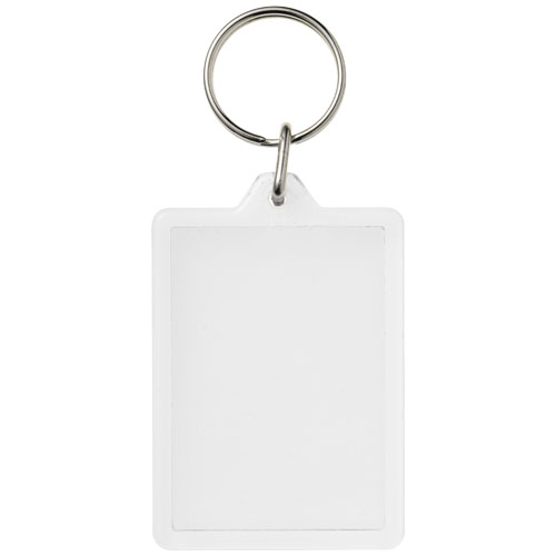 Čirá obdélníková klíčenka s kovovým kroužkem. Kovový kroužek má plochý profil, který je ideální pro korespondenci. Rozměry potištěné vložky: 5,0 cm x 3,5 cm. Rozměry: 6,3 x 4,1 cm