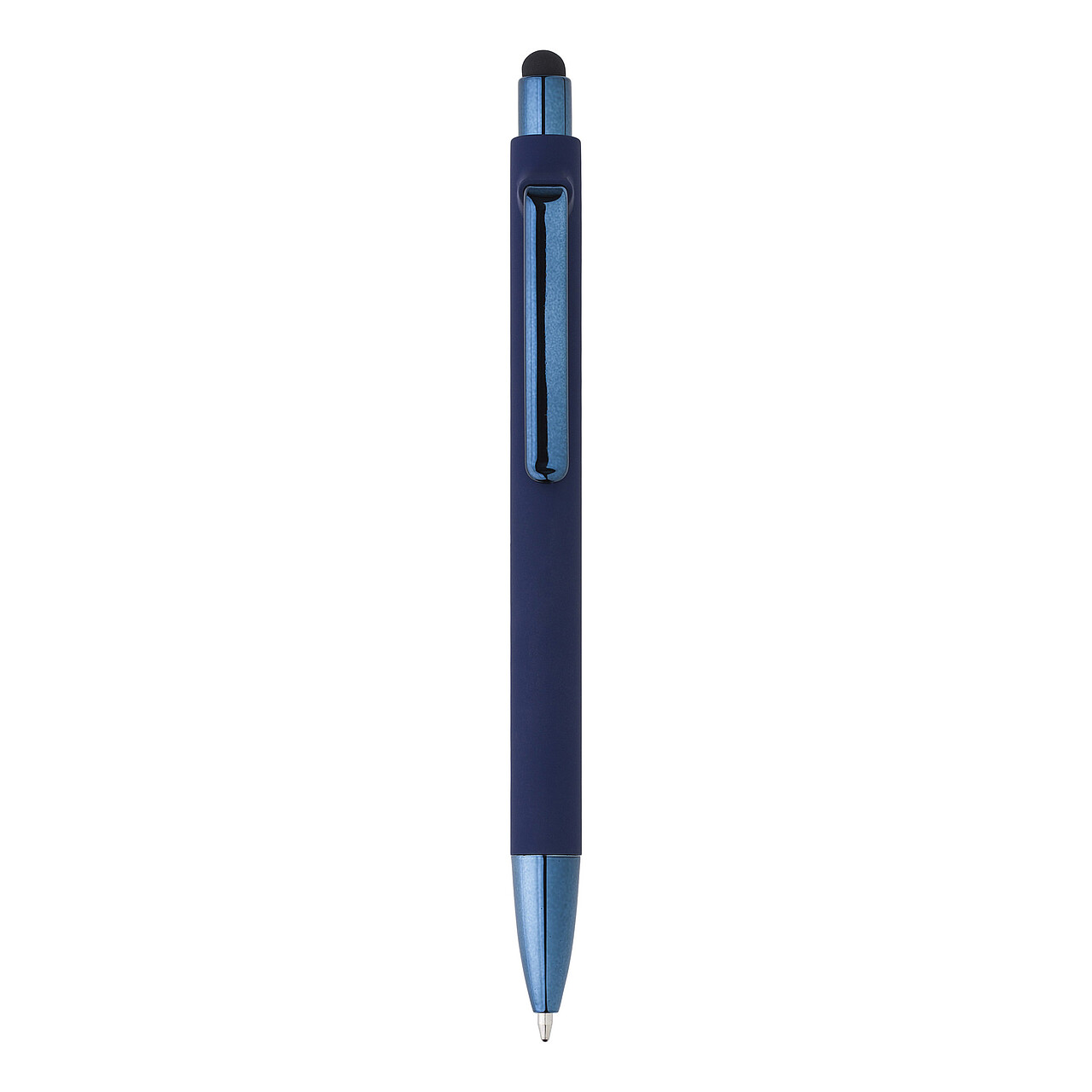 Plastové kuličkové pero s modrou náplní. Tělo pera má matný povrch zatímco špička, klip a tlačítko jsou lesklé. Na konci tlačítka je gumový stylus pro kapacitní displeje. Pero má zvýšenou hmotnost pro příjemnější pocit z psaní. Rozměry: O 1,1 × 14,8 cm.